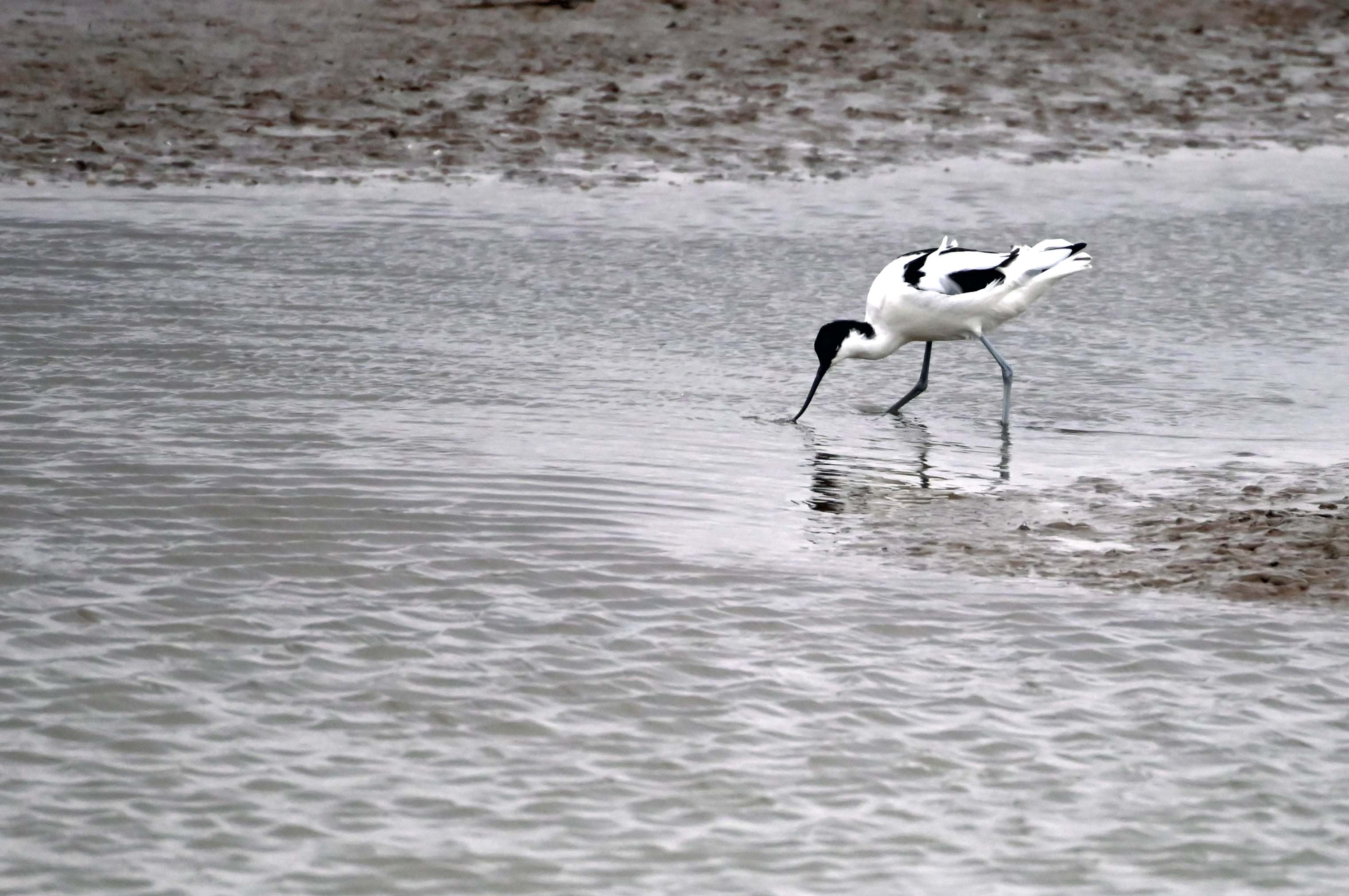 Walking back up from the sea wall end of the reserve, I decided to make my way to the ‘360 hide’, (a great favourite of mine), which almost delivers on it’s name and provides an excellent panoramic view of a vast swathe of the reserve with water almost completely surrounding the hide. It was a relief to get out of the cold wind and sit comfortably in the hide with a number of other birders. Here I photographed a Black-Tailed Godwit and a couple of Avocet which were feeding quite close to the hide.