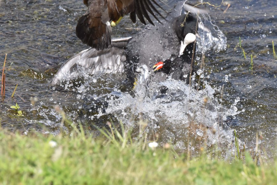 Ouch! A nasty disagreement between a Coot and a Moorhen. Neither bird was badly hurt, however.