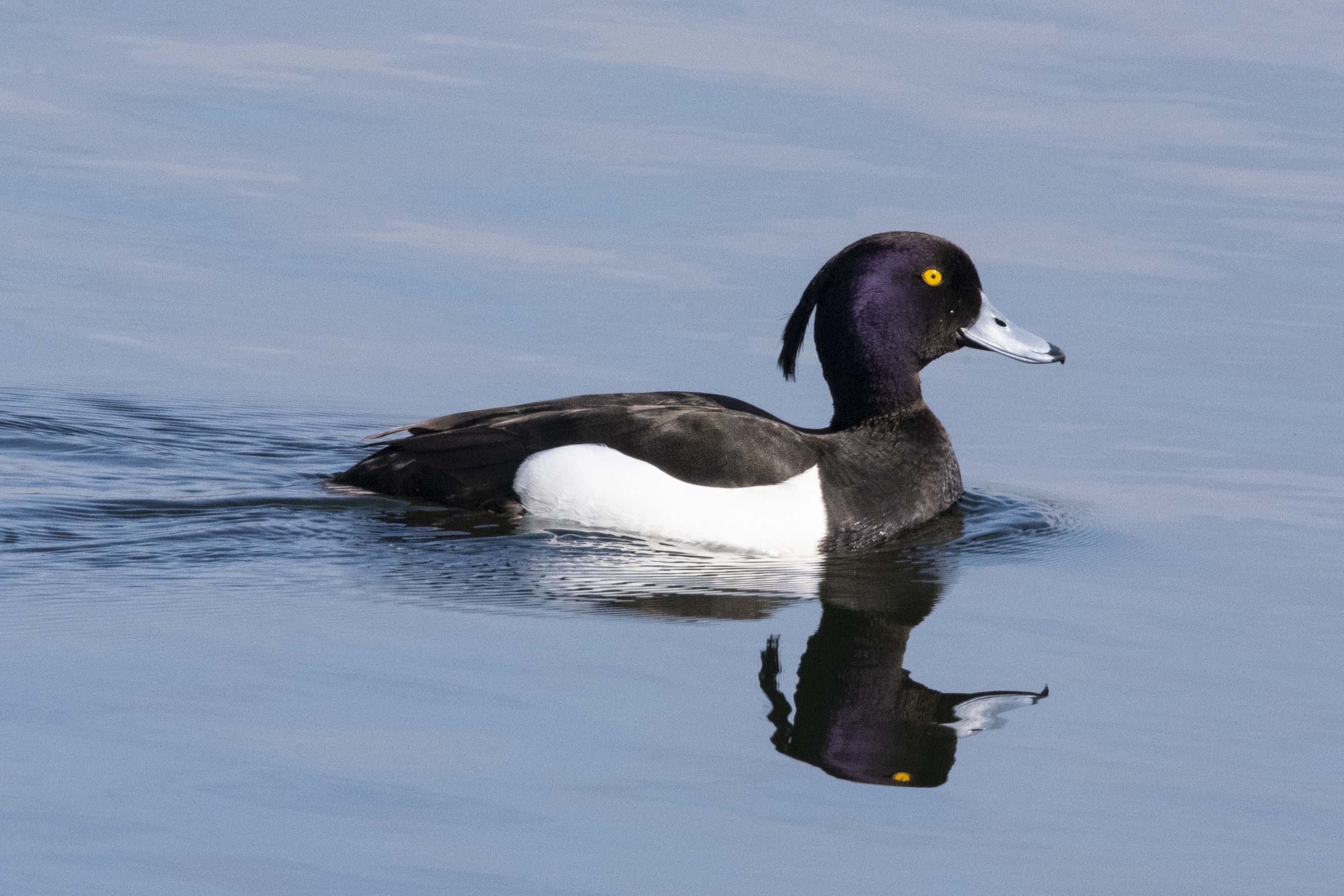 This smart-looking male Tufted Duck cruised by the front of the Reedbed Hide