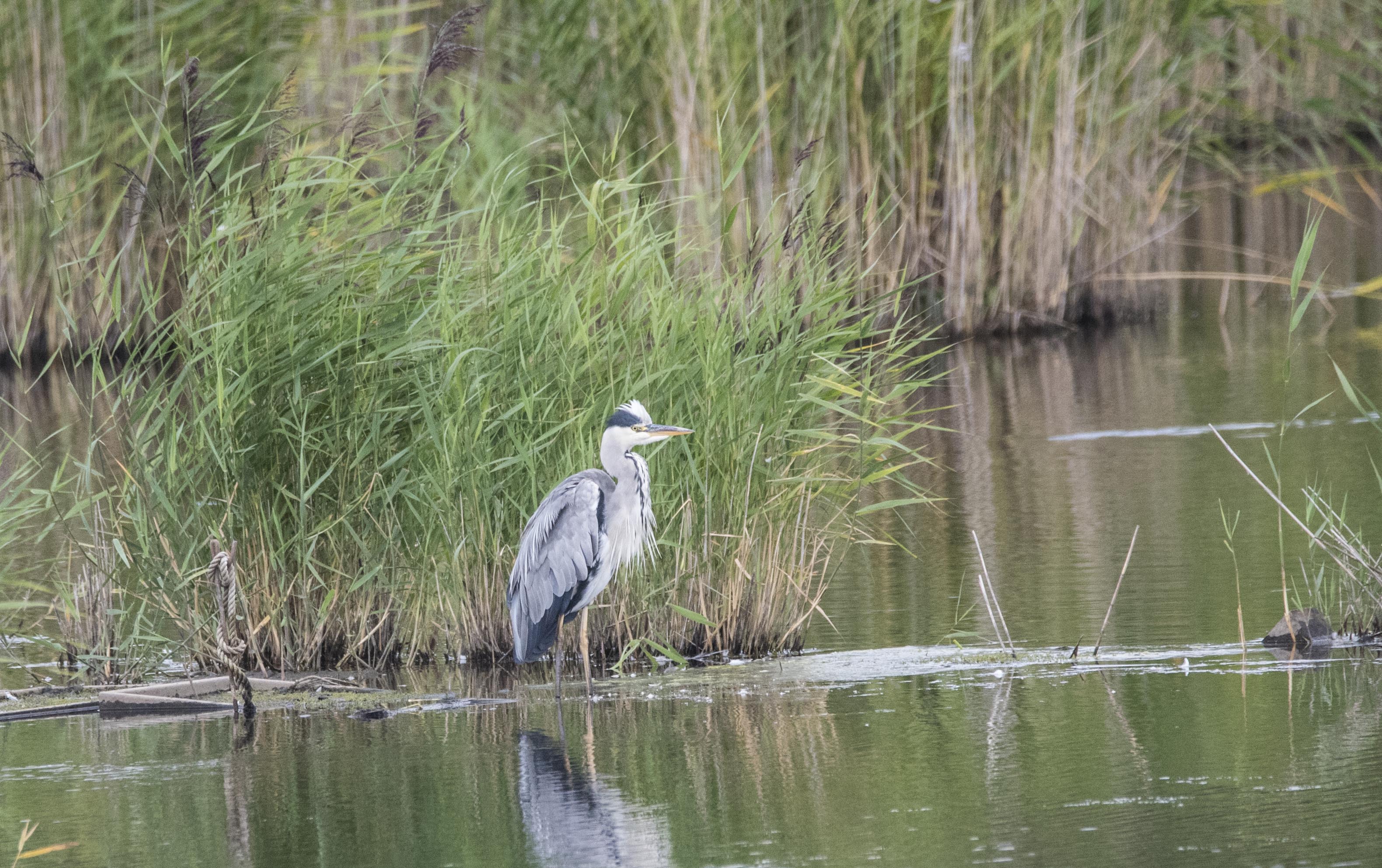 A Heron fishing near the Bittern Hide