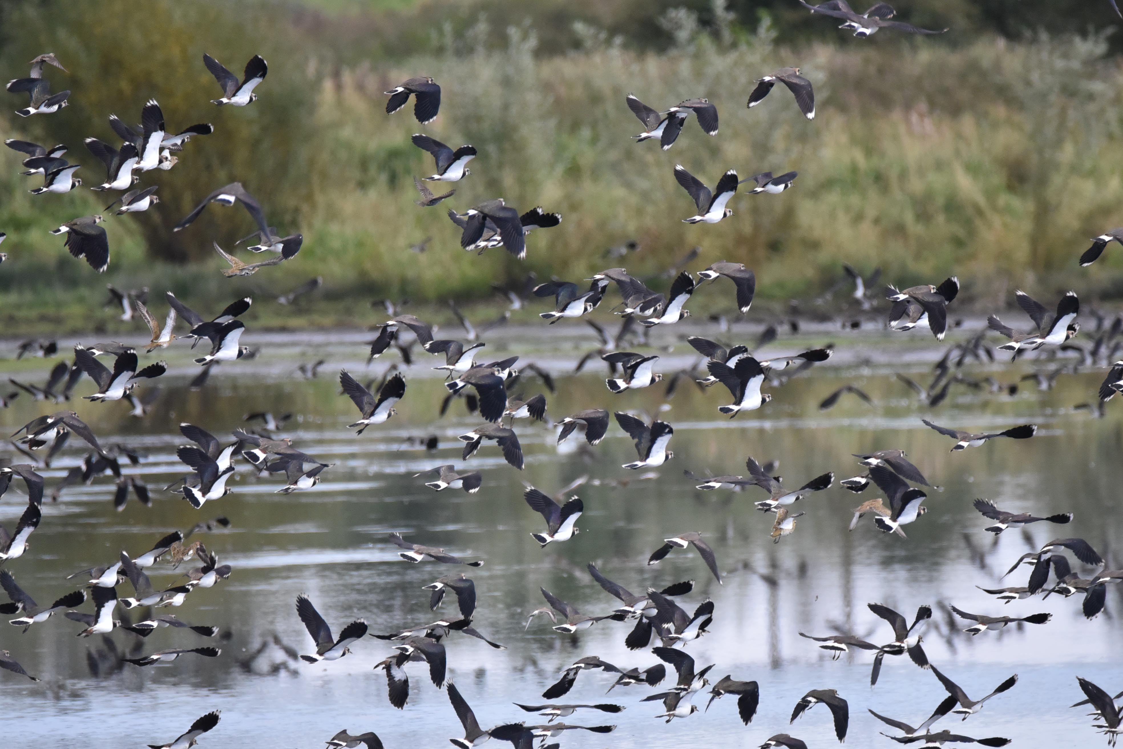 Spot the Golden Plovers – I think there are eight – also one Dunlin and a couple of Starlings!