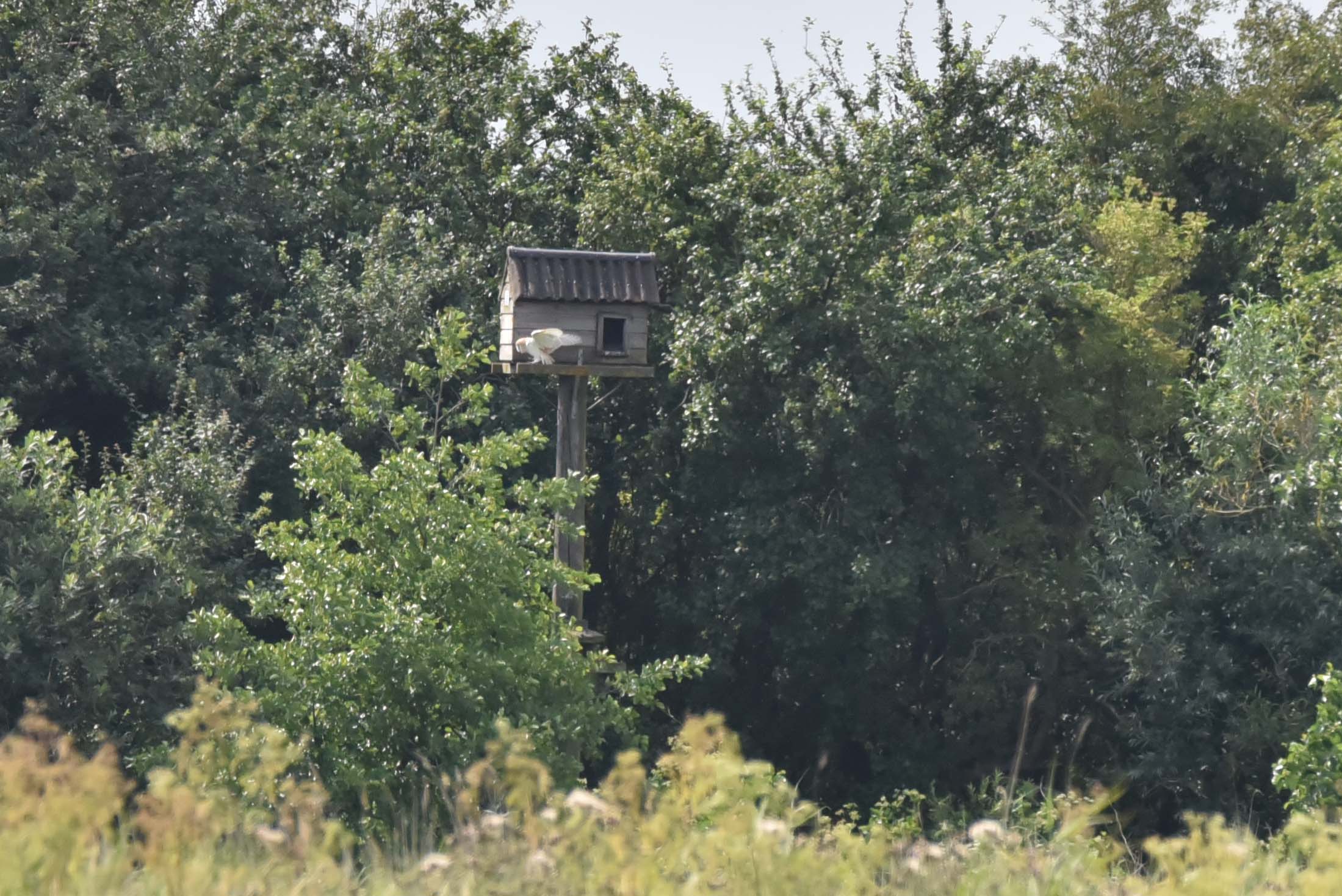 A young Barn Owl flexing its wings near