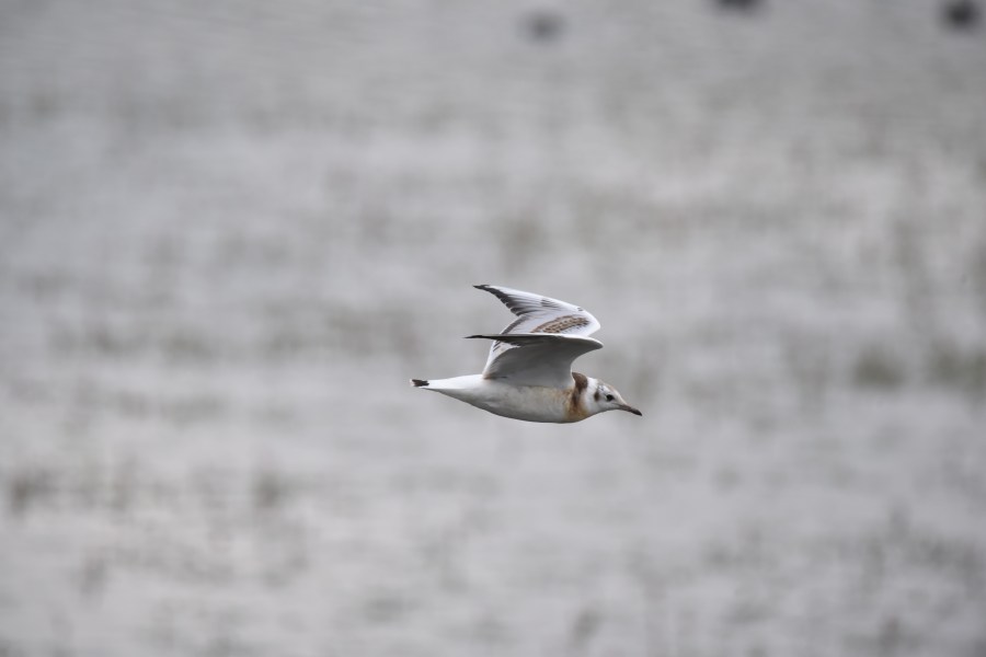 A juvenile Black Headed Gull flying over the Wader Scrape