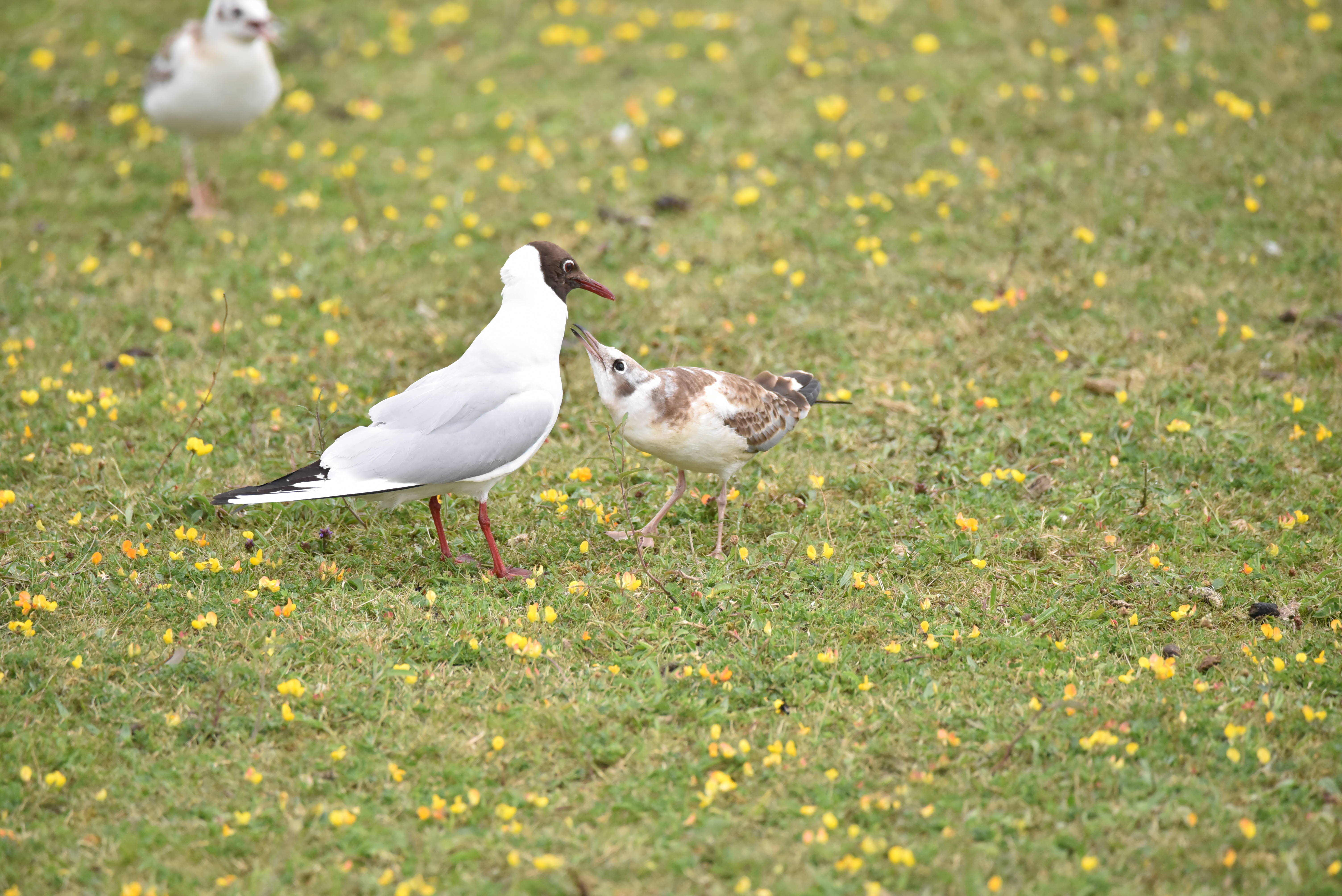A juvenile BHH Gull begs for food from its parent