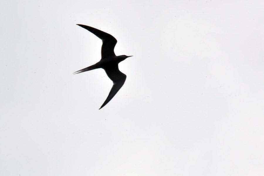 The unmistakable silhouette of a Common tern flying over Lagoon 4.