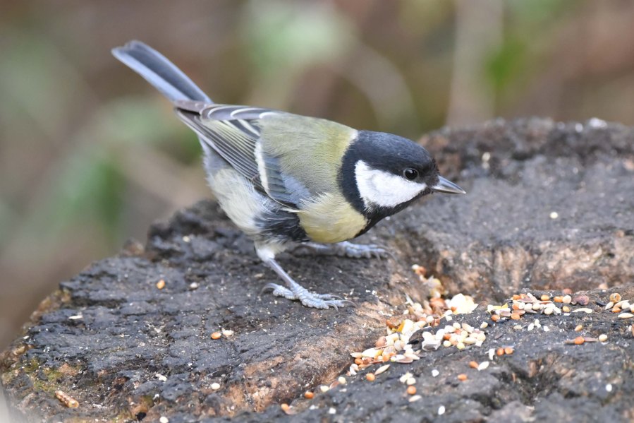 This Great Tit was enjoying the seed left by some kind passer-by