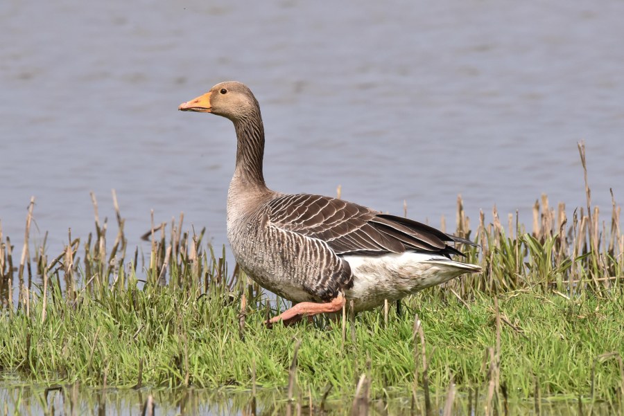 This beautiful Greylag Goose decided to patrol the water’s edge just in front of the Prospect Hide