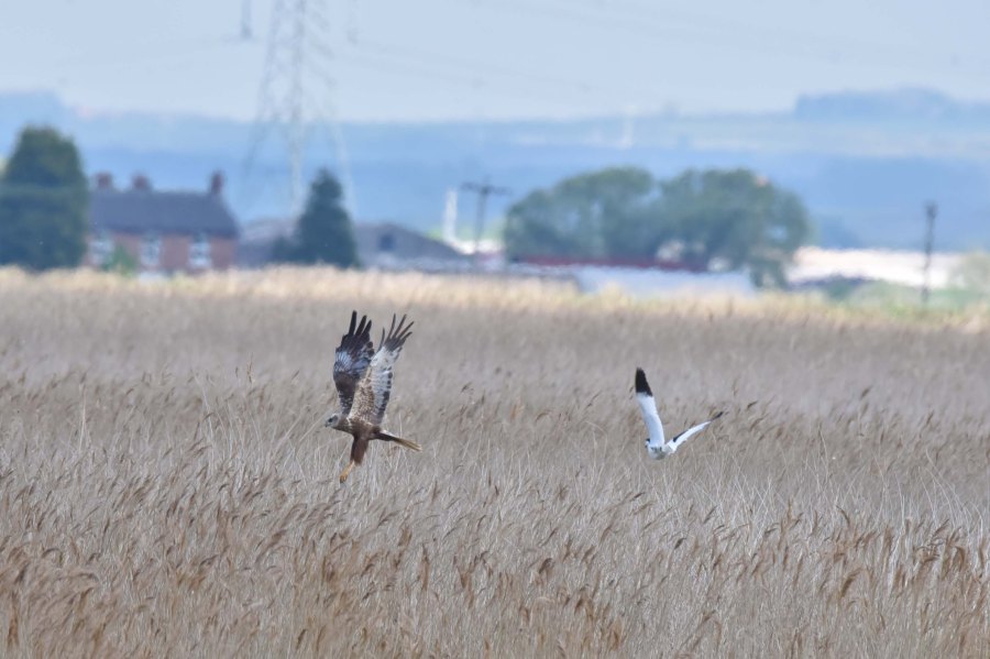 A Marsh Harrier being ‘harried’ by an angry parent Avocet
