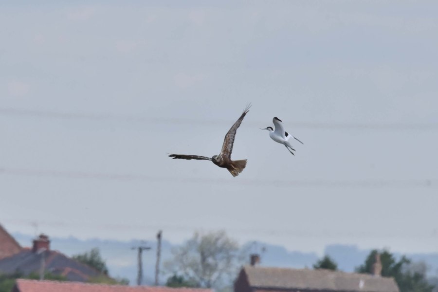A Marsh Harrier being ‘harried’ by an angry parent Avocet