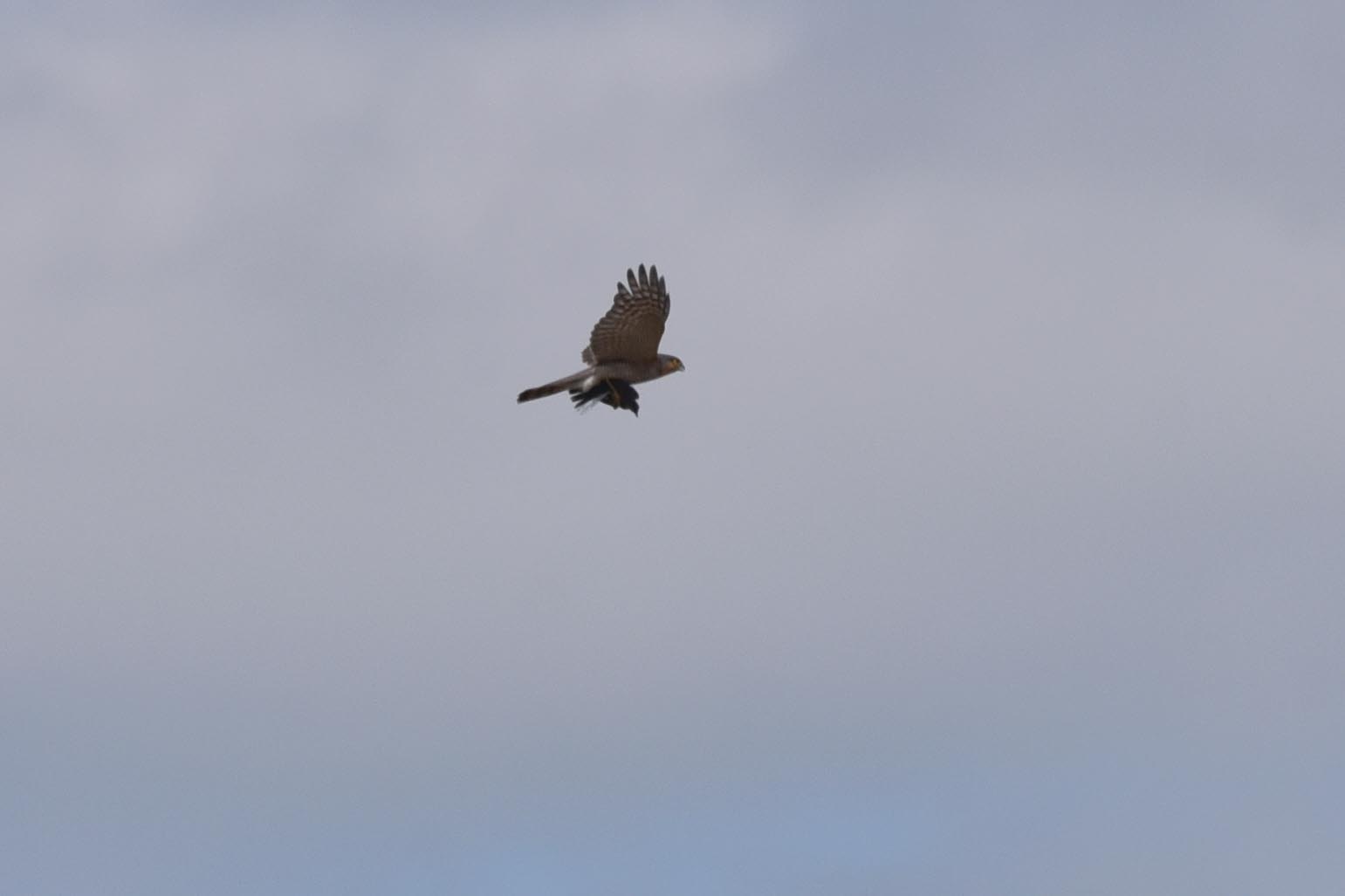 A Sparrowhawk carrying an unwilling passenger